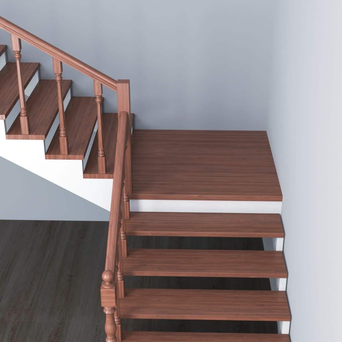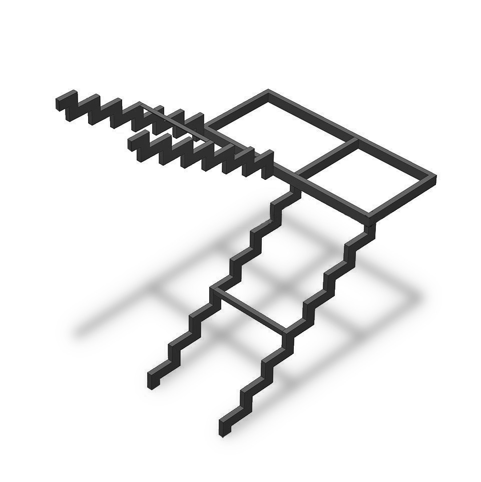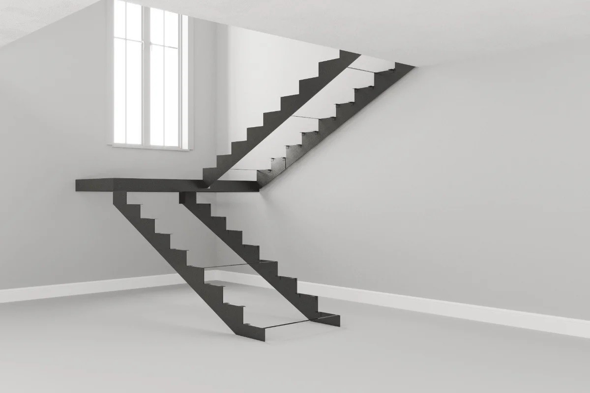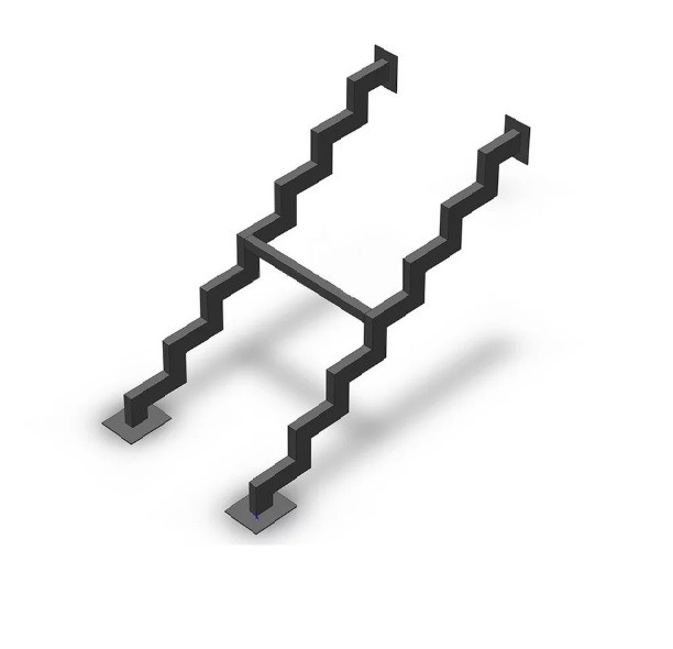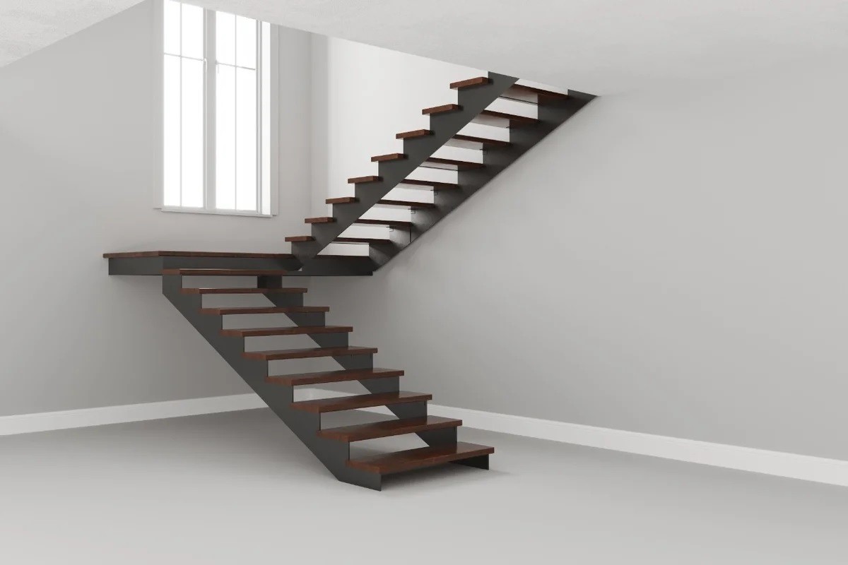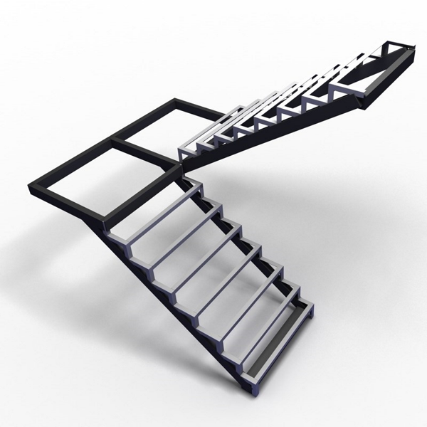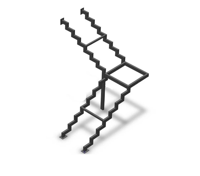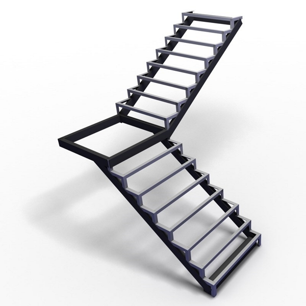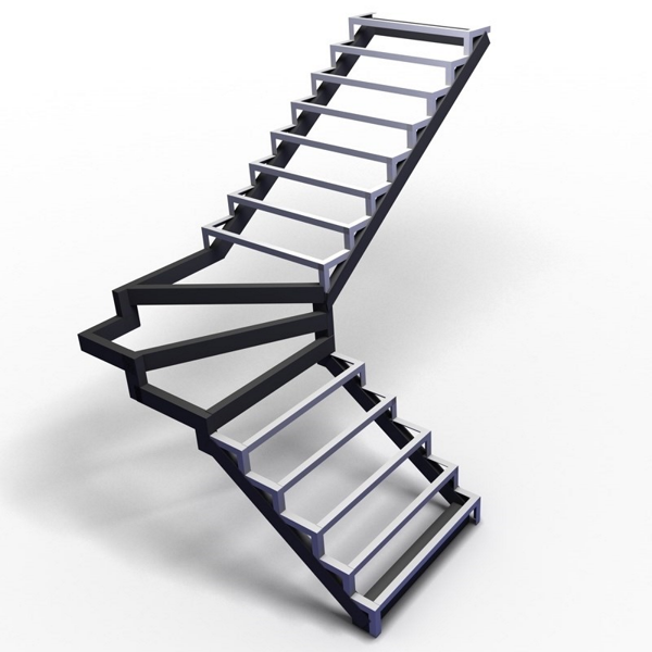 Г-образный каркас лестницы на двойном ломаном косоуре с площадкой, разворот на 90°