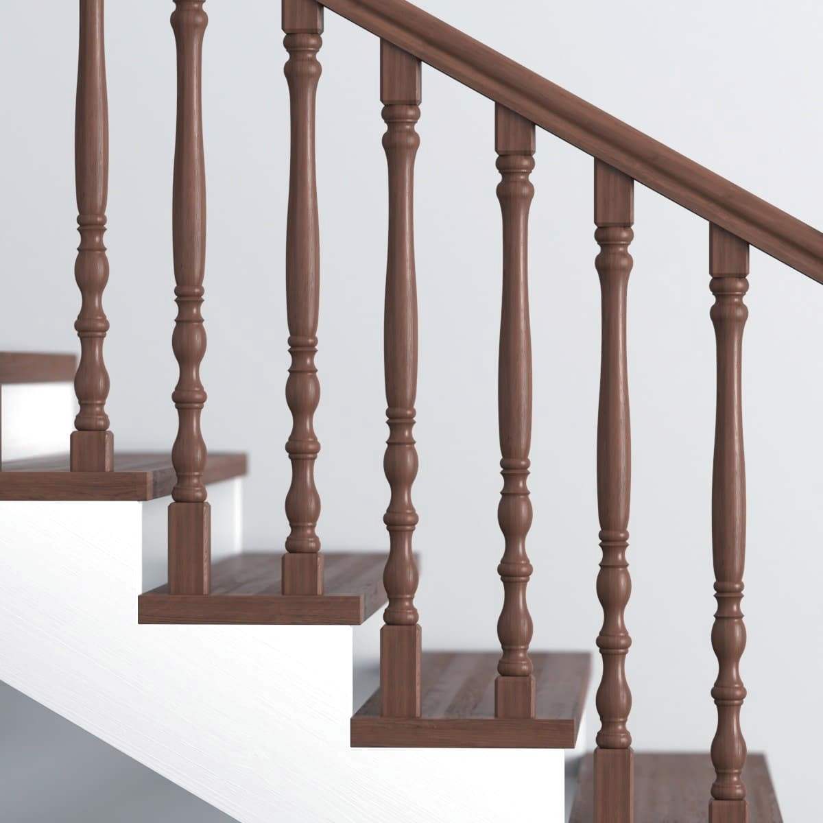 Необычные деревянные столбы и балясины квадратного сечения с поперечными фрезеровками