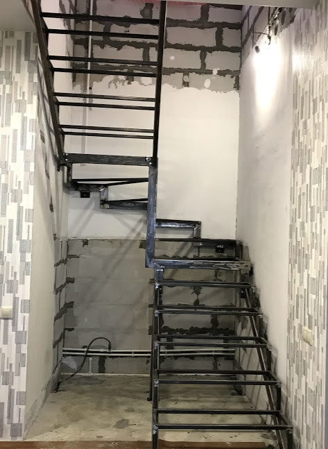 П-образный (180о) металлический каркас лестницы под отделку с забежными ступенями